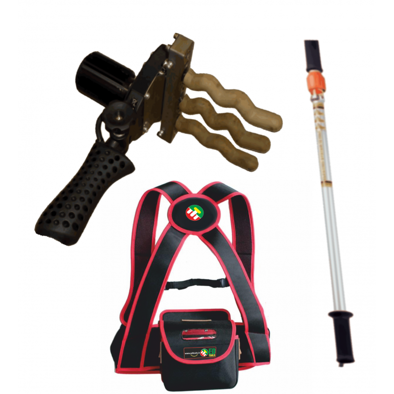 Professional machine ideal for a complete and fast harvest of table olives. The particular shape and material together with the rotary movement of the tools allow the integral harvesting in the plants favoring the selective separation of the olives